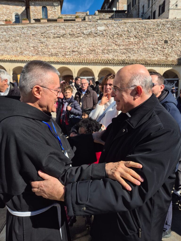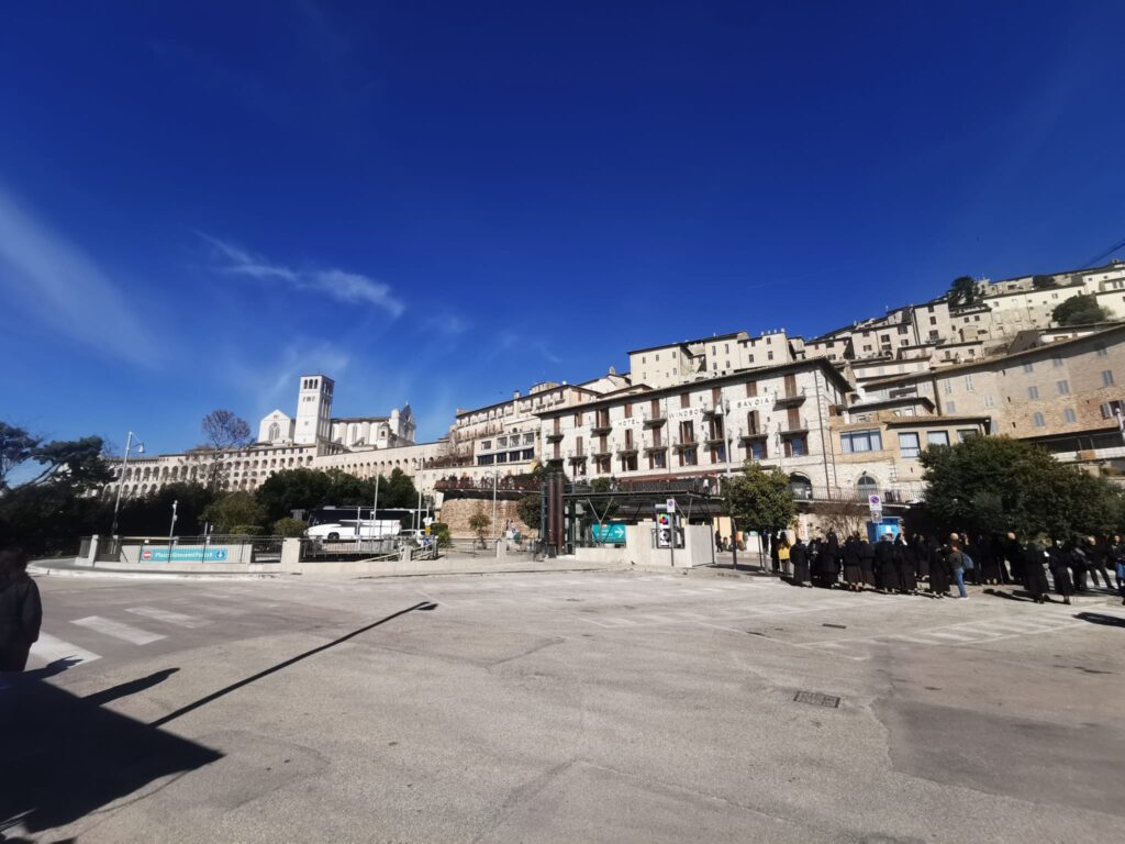 Il pellegrinaggio è continuato a piedi visitando la basilica di Santa Maria degli Angeli, luogo tanto caro a San Francesco, sostando vicino alla Porziuncola e alla cappella del transito, dove il 3 ottobre 1226 san Francesco concluse la sua vita terrena, lui l’“alter Christus” perché immagine autentica di Cristo, specchio vivente del Vangelo, da dove si sente il respiro della santità a cui tutti simo chiamati. Il pellegrinaggio ad Assisi degli ospiti del Focolare è stata un’esperienza che ci chiama a riconoscere come il dono di noi stessi nell’amore, mentre ci consuma, quando è vissuto in unione con Cristo, diventa il passaggio alla pienezza della Vita, che è la comunione con Dio Padre e con tutta l’umanità per l’azione dello Spirito santo- amore, principio e compimento dell’unità. L’ostensione testimonia come il Santo di Assisi sia ancora oggi un dono per tutti. In lui le relazioni possono riscoprirsi fraterne, il mondo appare casa comune e il futuro grembo di speranza e di pace.