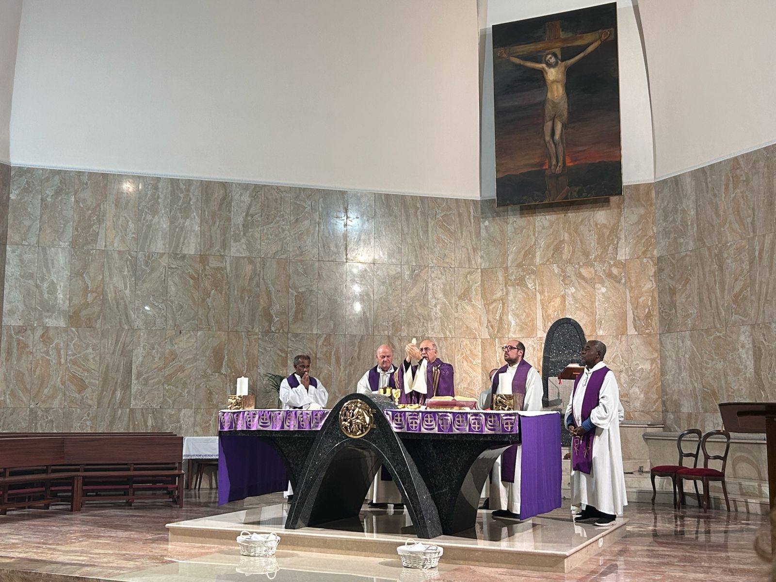 L’arcivescovo Angelo presente all’incontro è stato invitato a intervenire. Ha ringraziato tutti per la partecipazione e per il cammino intrapreso. Ha sottolineato come è necessario ed essenziale essere uniti a Cristo, Buon pastore e camminare insieme pastore e popolo di Dio, nell’unità. E’ necessario avere chiaro che si è Chiesa diocesana e che le parrocchie sono chiamate a fare un cammino di Chiesa in unione con il Vescovo. Le identità non vanno tolte, ma vanno integrate in un cammino comune. E’ seguito il momento dei tavoli sinodali per elaborare le proposte che impegnano a promuovere l’unità pastorale tra le quattro parrocchie. Al termine dei lavori ci si è ritrovati tutti in chiesa per la celebrazione della S. Messa presieduta dall’Arcivescovo, che ha ancora una volta sottolineato come è necessario  accogliere, seguire e testimoniare Gesù, sorgente di acqua viva.