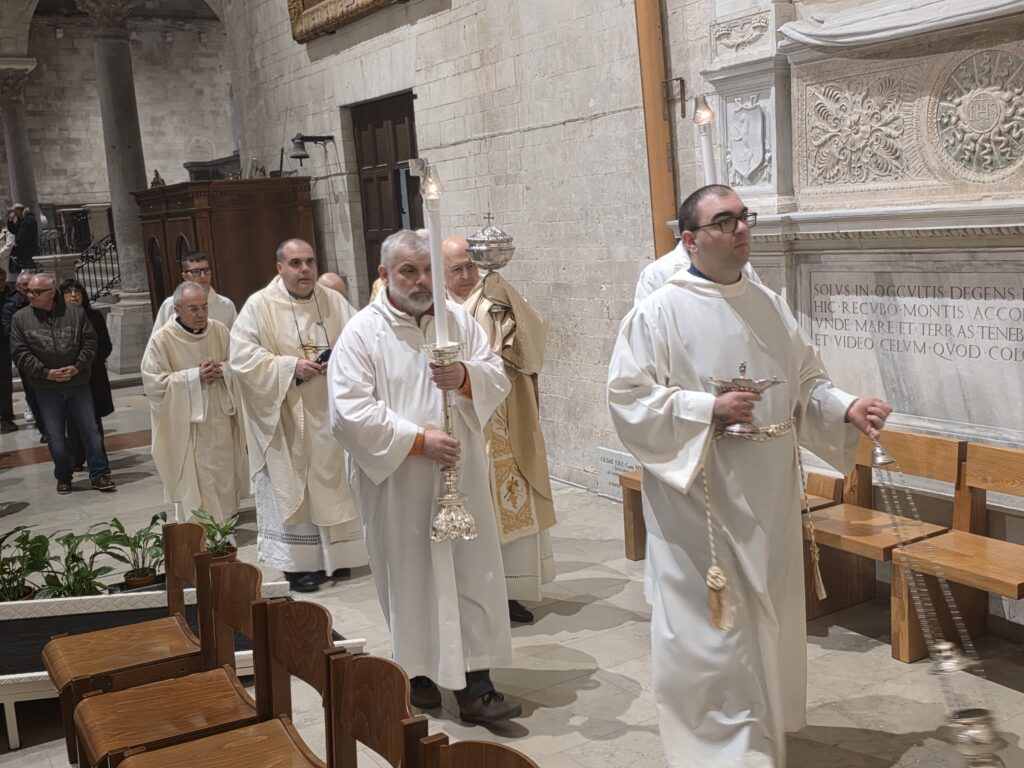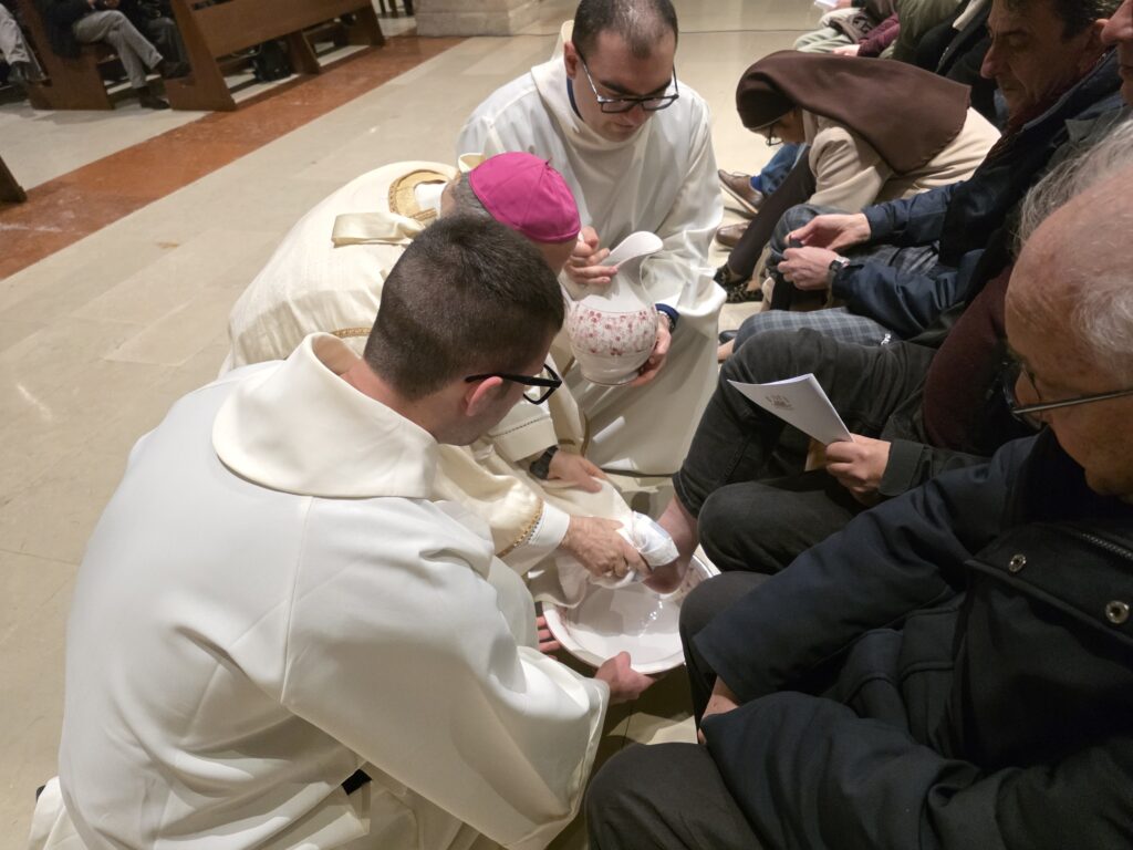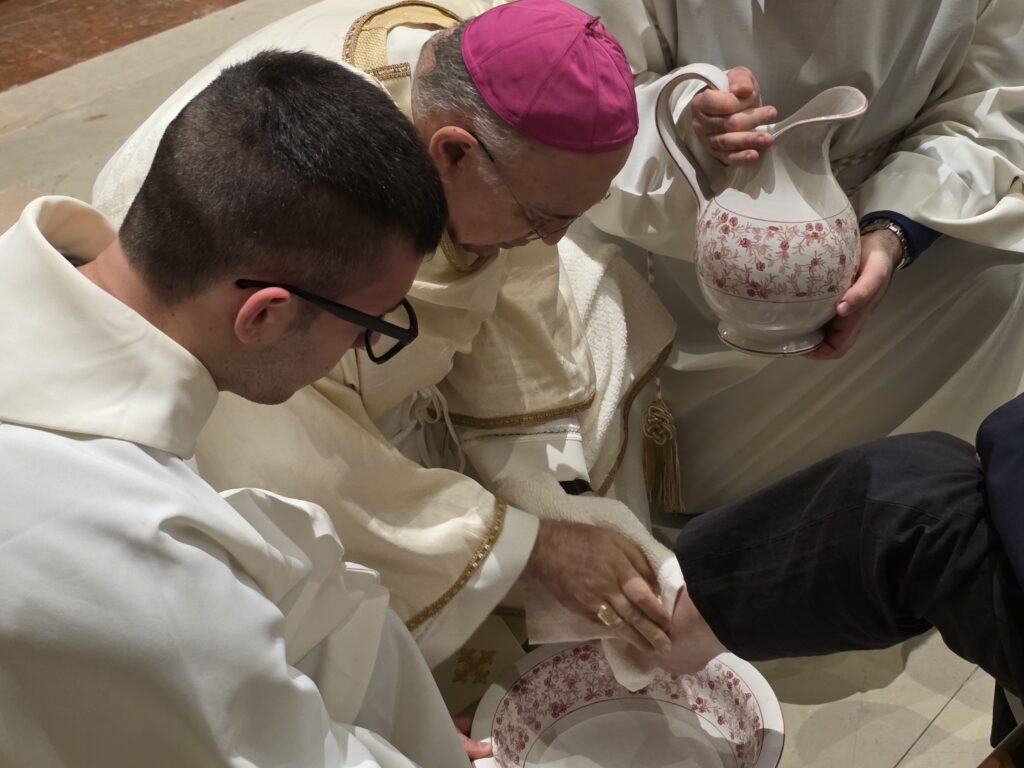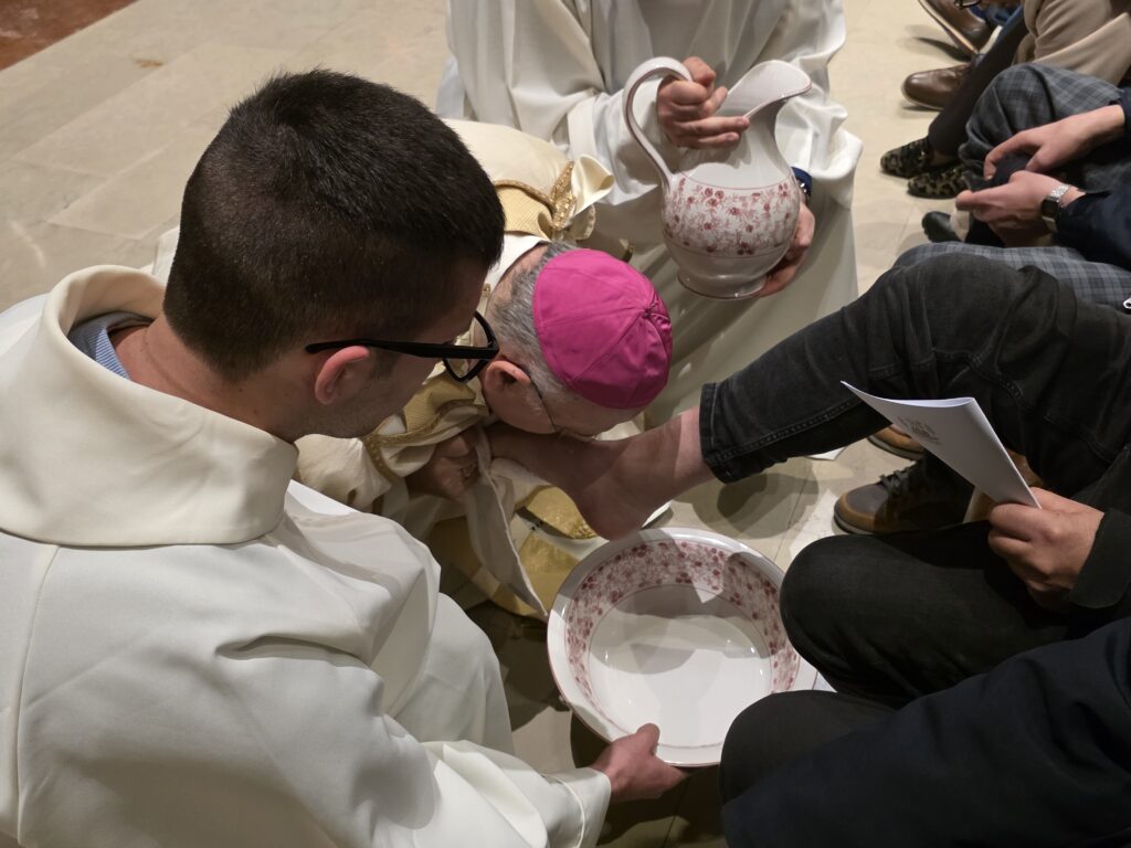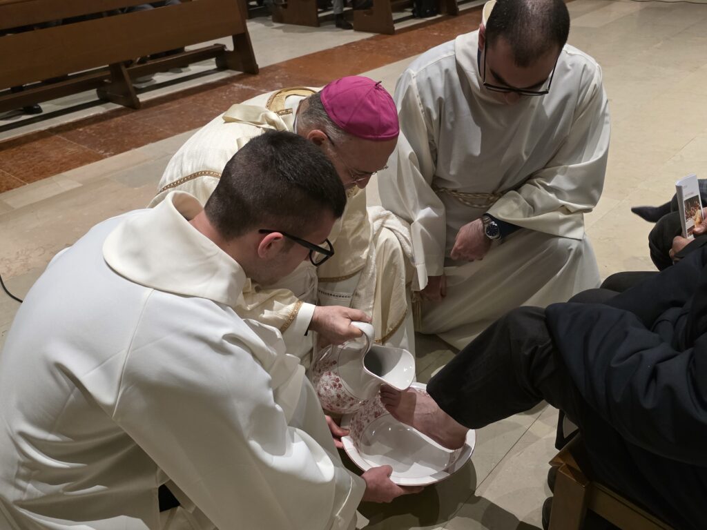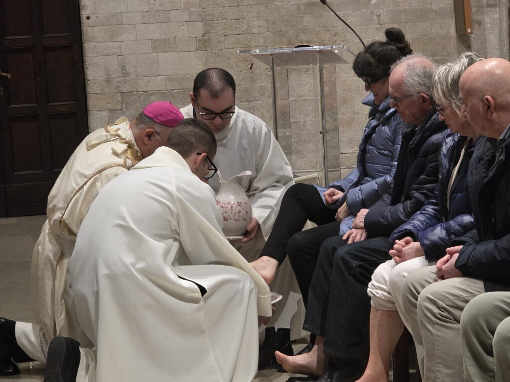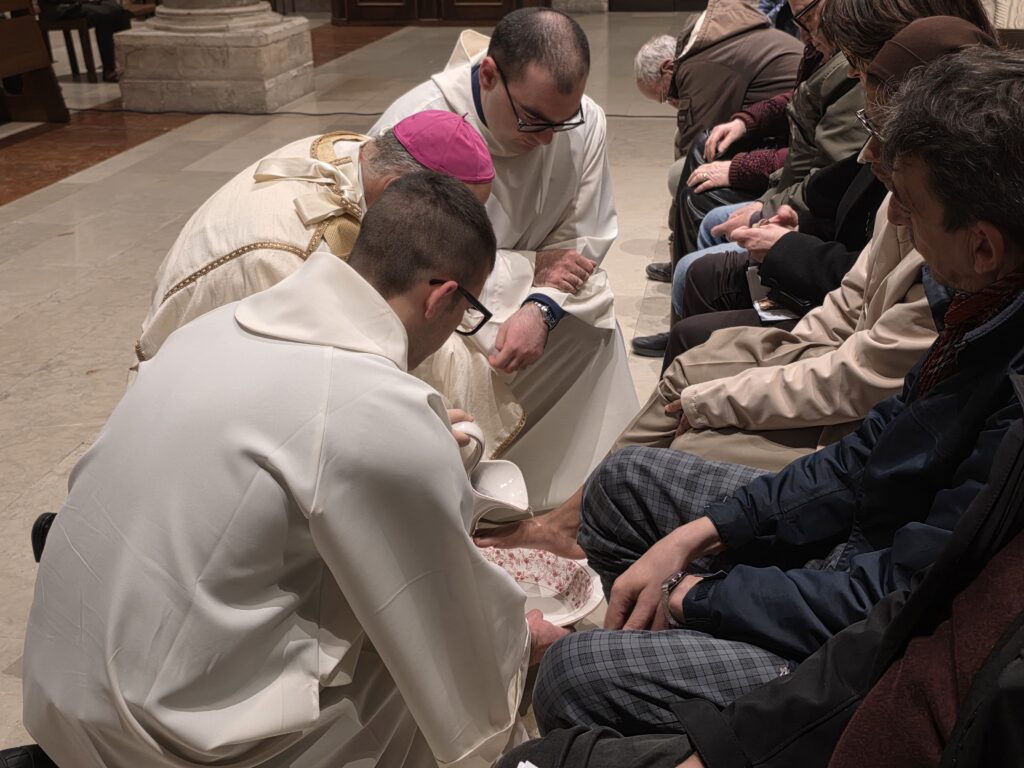 Nell’omelia, Mons. Angelo Spina ha invitato i fedeli a lasciarsi trasformare dall’esempio di Cristo, che «non è venuto per essere servito, ma per servire», esortando tutti a vivere una fede concreta, capace di farsi dono nelle relazioni di ogni giorno. Spiegando il significato del rito della lavanda dei piedi, ha spiegato che «è il gesto del servire, non del comandare. È il gesto di abbassarsi, non di stare in alto. Noi spesso guardiamo gli altri dall’alto in basso, ma Gesù è venuto per servire. Oggi accogliamo il comandamento dell’amore».