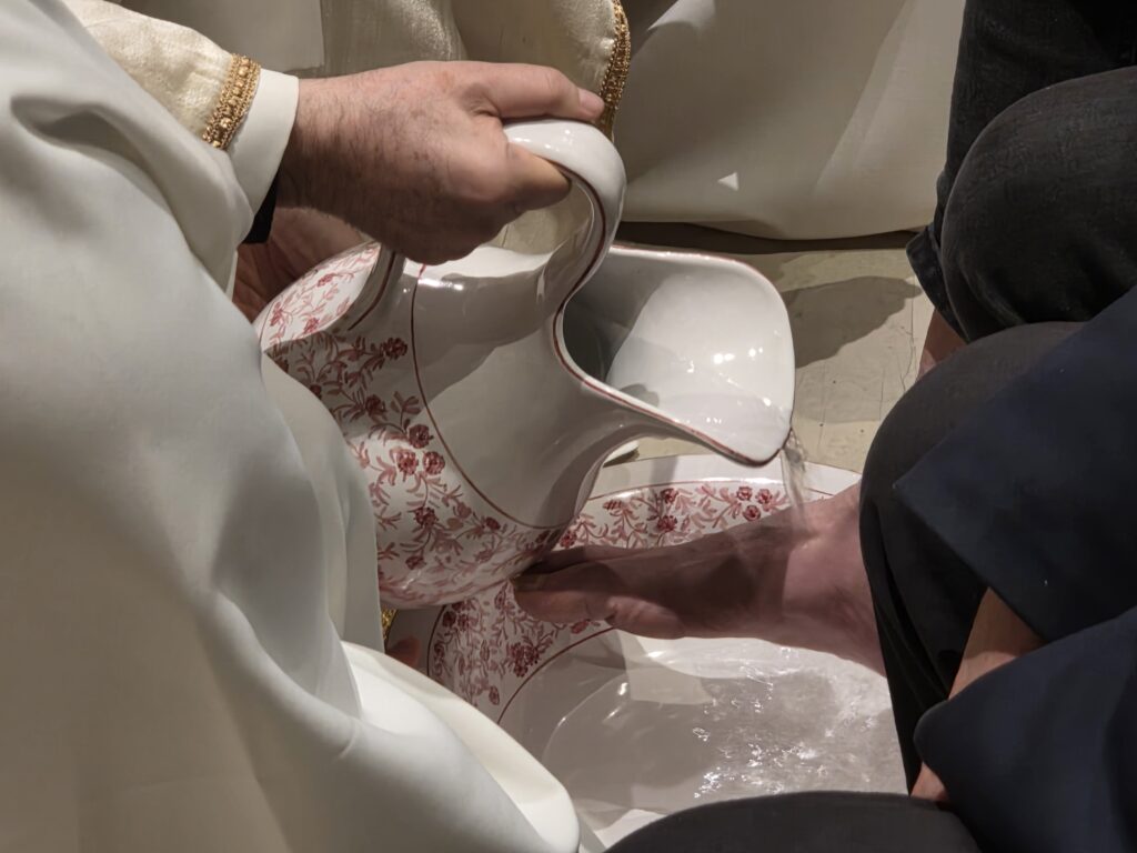 Infine, un invito concreto, che tocca la vita quotidiana: «“Fino alla fine” significa amare fino alla perfezione, fino al dono totale di sé. Non basta dirlo a parole. A casa, nelle relazioni, sei chiamato a scegliere: fai crescere l’orgoglio o l’umiltà? Io, che sono marito, lavo i piedi a mia moglie e viceversa? Sei capace di abbassarti per amore? Di niente dobbiamo vantarci, se non della croce di Gesù. Siamo chiamati a essere uomini e donne santi in questo tempo, strumenti di pace».