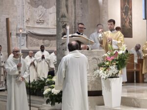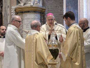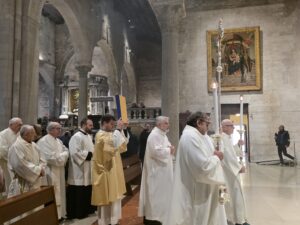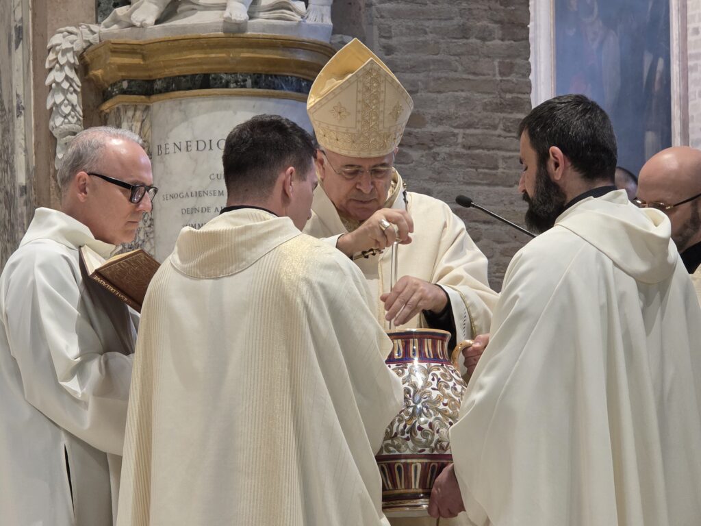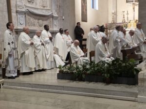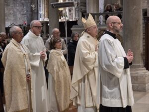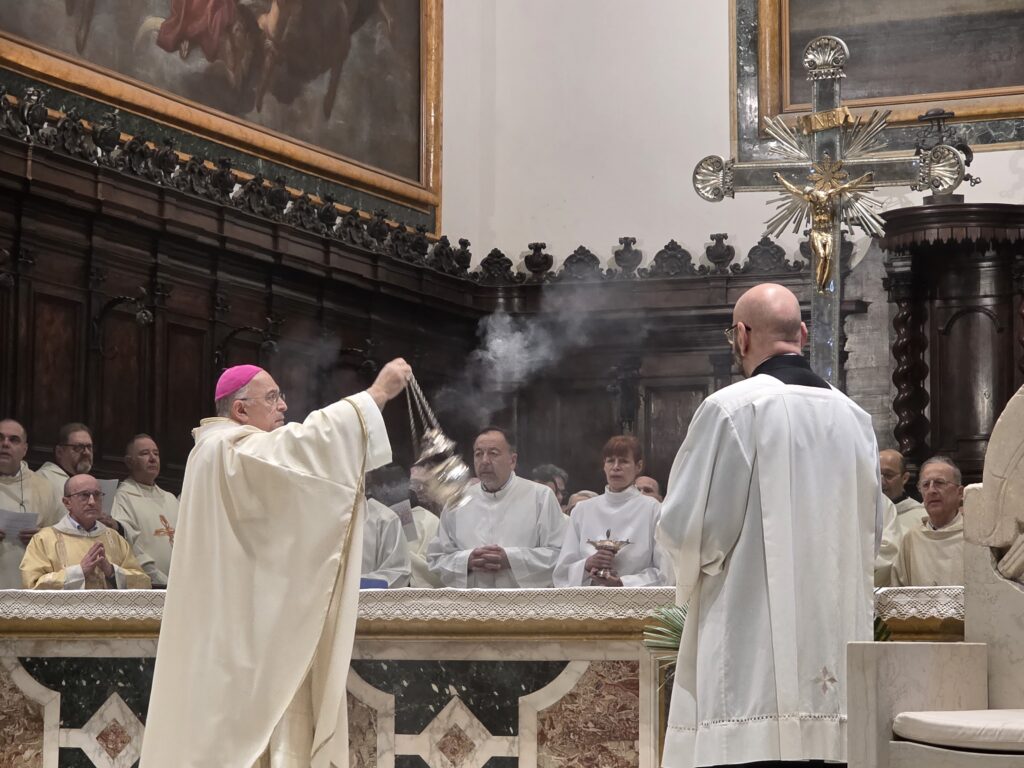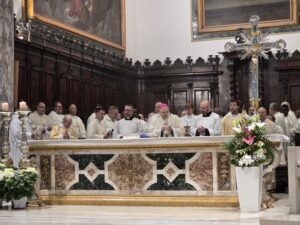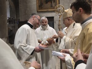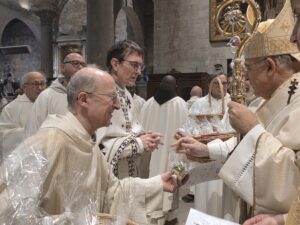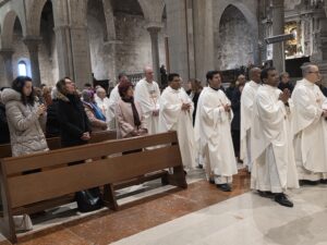 Questa mattina, nella Cattedrale di San Ciriaco, è stata celebrata la Messa Crismale, cuore della vita sacerdotale e segno visibile della comunione ecclesiale. Attorno a Mons. Angelo Spina, gli oltre cento sacerdoti dell’Arcidiocesi di Ancona-Osimo hanno rinnovato con fede le promesse pronunciate nel giorno dell’ordinazione, manifestando l’unità del presbiterio al servizio del popolo di Dio.