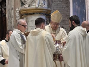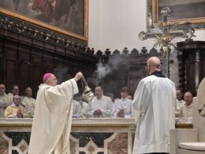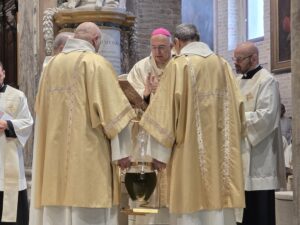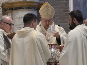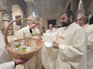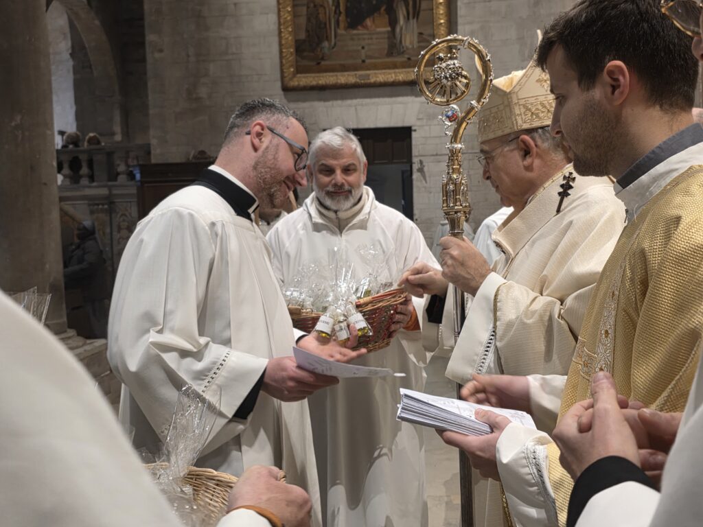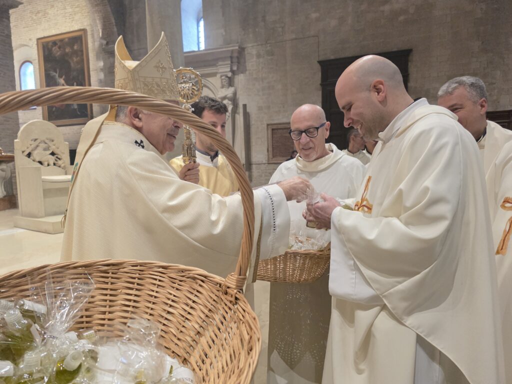 Durante la celebrazione sono stati anche benedetti gli oli (Crisma, olio dei catecumeni e olio degli infermi), con i quali, durante l’anno, saranno amministrati i sacramenti del battesimo, della confermazione, dell’ordine e dell’unzione degli infermi. L’Arcivescovo ha spiegato che «l’olio, nella Bibbia, è simbolo di benedizione e prosperità: dona gioia, forza, guarisce le ferite. Ciascuno di noi con il battesimo è stato unto per essere unito al Signore Gesù ed essere sacerdote, re e profeta».