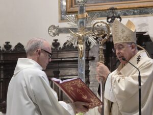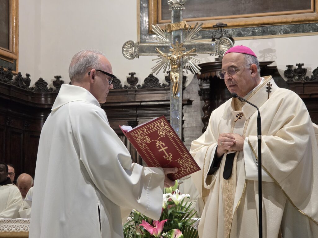 L’Arcivescovo ha sottolineato che «il sacerdote è l’uomo della Parola, dell’eucaristia, della carità. Oggi rinnoviamo il nostro “Sì, lo voglio! Sì, lo prometto!”. Per tutta la vita. Non un semplice slogan, ma la storia di un “sì” che perpetua il mistero di Cristo nelle giornate terrene di uomo che si spende senza riserve a causa del Vangelo: alzare le mani al cielo e tenderle verso i poveri e gli ultimi. Per tutta la vita senza arrendersi mai, con la forza di rialzarsi dalle cadute, dai fallimenti che, a volte, svuotano il cuore. Unito ai successori degli Apostoli, il presbitero edifica la Chiesa, prega, opera e sostiene la vita di fede del popolo di Dio sotto l’azione dinamica dello Spirito Santo».