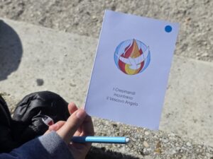 Fin dall’inizio ai giovani è stato consegnato un cartoncino, una sorta di “passaporto” simbolico: ad ogni tappa del percorso è stato aggiunto un adesivo, segno di un cammino che non è solo da compiere, ma da vivere.