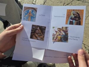 La seconda tappa ha portato i ragazzi dentro le scelte di Francesco. Il santo di Assisi rinunciò alle ricchezze e si prese cura dei lebbrosi, cioè di coloro che tutti evitavano. Attraverso un gioco, i ragazzi hanno riflettuto su chi oggi siano i “lebbrosi”: persone con disabilità, chi è emarginato, chi vive nella solitudine. Il messaggio è stato chiaro e diretto: non passare oltre, ma farsi prossimi.