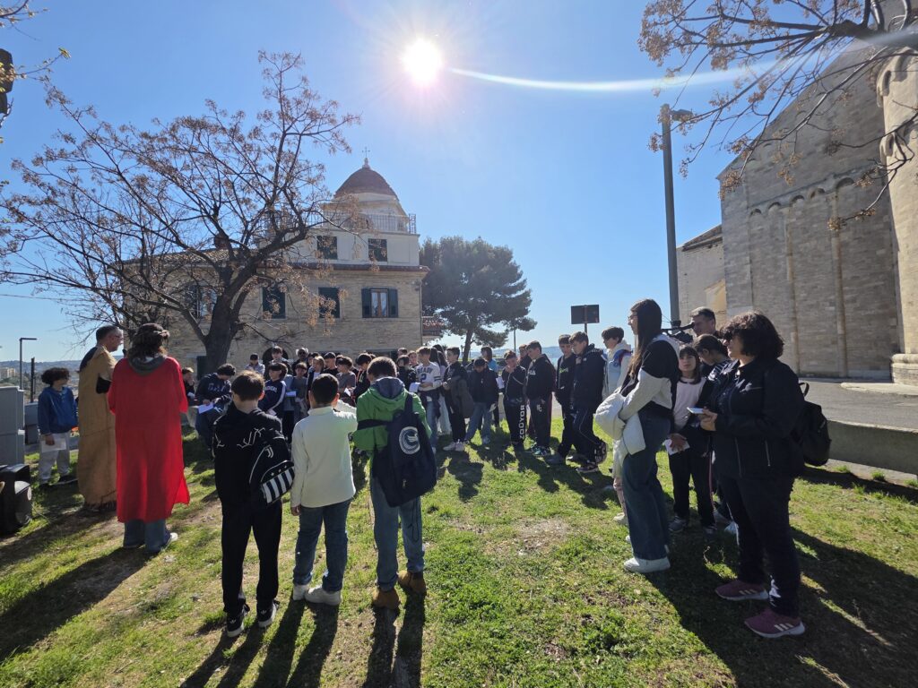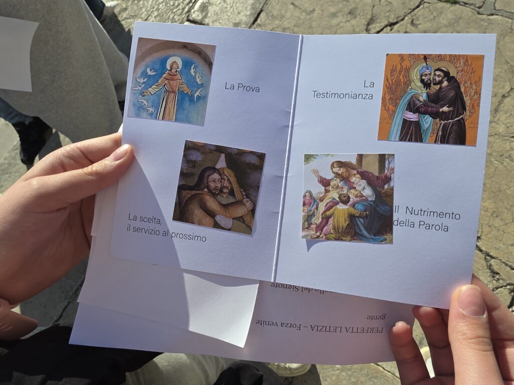 La terza tappa ha messo al centro la testimonianza di pace di San Francesco, attraverso il racconto dell’incontro con il Sultano al-Malik al-Kamil durante le crociate. Francesco si presenta disarmato, come uomo di pace, e sceglie il dialogo invece dello scontro. Un episodio lontano nel tempo, ma straordinariamente attuale. I ragazzi hanno pensato al mondo di oggi, segnato da tanti conflitti, e sono stati invitati ad essere costruttori di pace nella vita quotidiana: nelle relazioni, a scuola, in famiglia. Non grandi gesti eroici, ma scelte concrete e quotidiane.