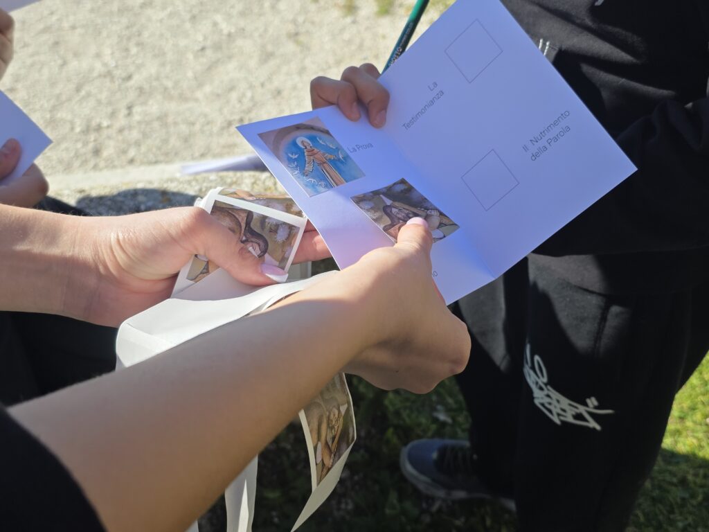 Fin dall’inizio ai giovani è stato consegnato un cartoncino, una sorta di “passaporto” simbolico: ad ogni tappa del percorso è stato aggiunto un adesivo, segno di un cammino che non è solo da compiere, ma da vivere.