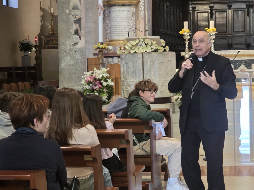 Il cammino si è concluso in Cattedrale, con l’ultima tappa: “Il nutrimento della Parola”. I ragazzi si sono ritrovati con l’Arcivescovo, che ha cantato insieme a loro “Jesus Christ You Are My Life”. «Gesù è il Signore della vita – ha detto Mons. Angelo Spina – voi per crescere bene avete bisogno del Signore». E ha aggiunto: «Sulla croce Gesù dice a ognuno di noi: ti amo da morire. Ci dona il perdono e la pace». Ricevendo lo Spirito Santo nella Cresima, i ragazzi sono chiamati a rispondere a questo amore: «Dite a Gesù: eccomi, fammi crescere con una bella anima, con un cuore sempre buono e felice».
