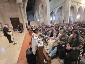 Per seguire le orme di un ragazzo che si chiamava Francesco, i cresimandi delle parrocchie di Ancona hanno fatto un viaggio nel tempo di 800 anni, nella città di Assisi. Un viaggio non fatto con i piedi, ma con il cuore, per scoprire che la storia di San Francesco parla ancora oggi, in modo concreto, alla vita di ciascuno. Quattro aspetti della vita del santo (la prova, la scelta e il servizio al prossimo, la testimonianza, il nutrimento della Parola) sono stati presentati ai ragazzi durante l’incontro, organizzato martedì 7 aprile nella Cattedrale di San Ciriaco, dai catechisti e dagli educatori di Ancona.