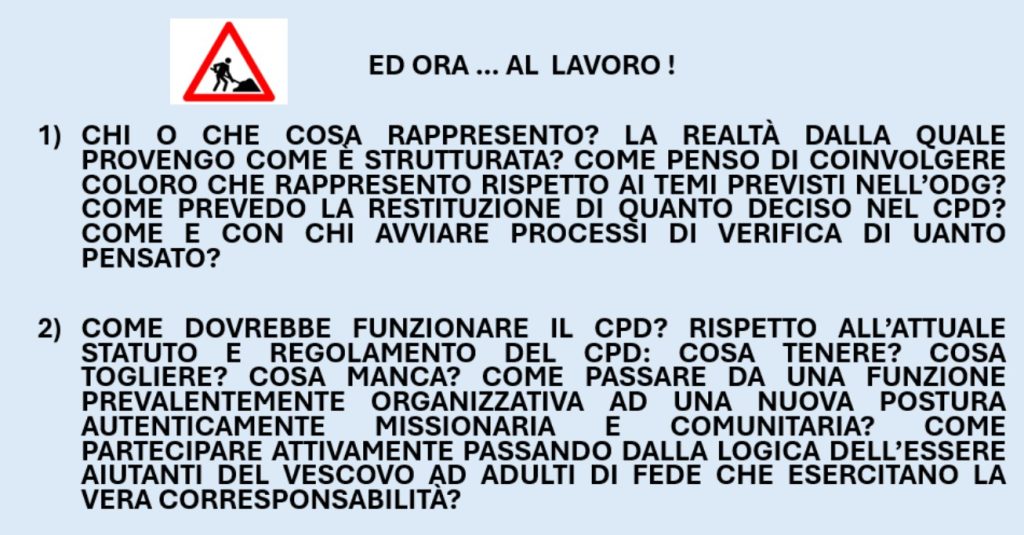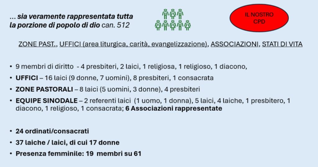 Il CPD è molto rappresentativo e l’incontro del 16 aprile si è svolto in ottemperanza di quanto previsto nelle proposizioni: tavoli sinodali, odg accompagnato dalla documentazione necessaria per lo svolgimento dei tavoli sinodali, verbale, pubblicazione del verbale.
