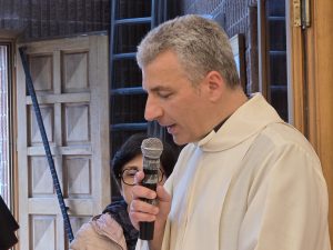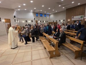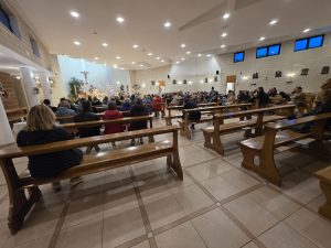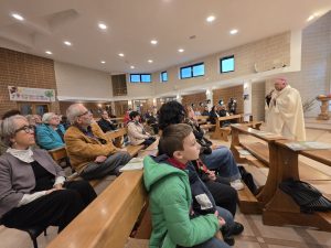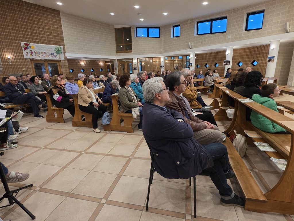Nel presentare la realtà parrocchiale, don Massimiliano ha evidenziato come si tratti di una comunità giovane, nata circa trent’anni fa e caratterizzata da una storia segnata da diversi cambi di parroci. Da tre anni e mezzo è lui a guidarla, accompagnando circa 3500 abitanti in un tempo che ha definito «di cambiamento d’epoca». Proprio per questo, ha spiegato, «la comunità ha intrapreso un cammino verso uno stile più missionario e sinodale: dalla nascita dell’oratorio, alla riscoperta della lectio divina, con un passaggio da una Chiesa più istituzionale e formale a una Chiesa missionaria».
