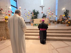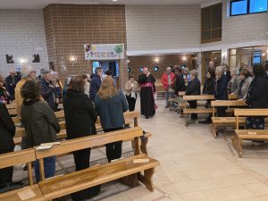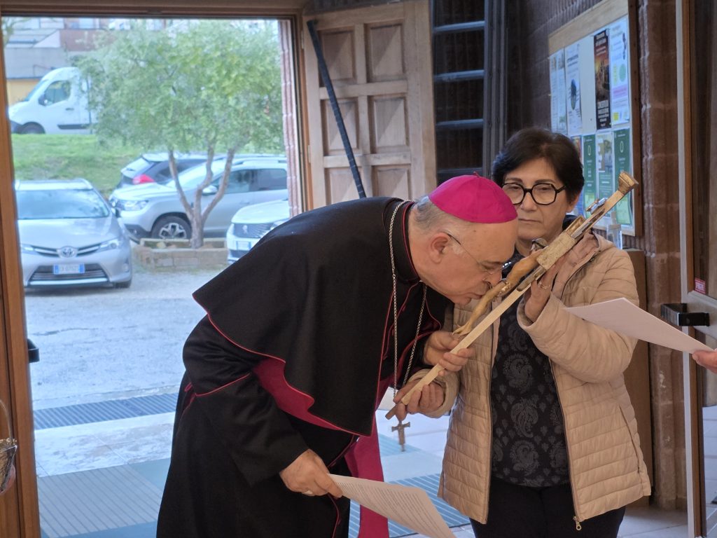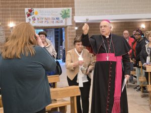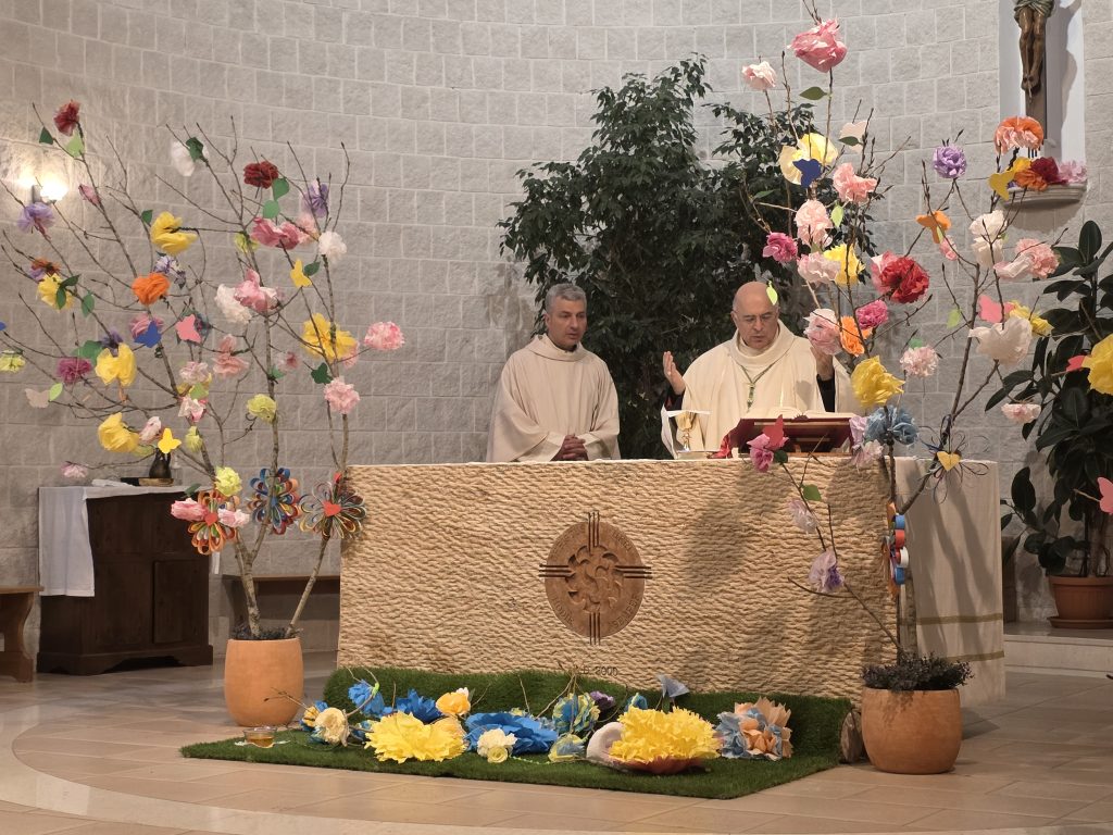 Con un altare addobbato con rami fioriti e colori vivaci, segno della vita nuova della Pasqua, e un cartellone di benvenuto preparato dalla comunità, la parrocchia San Giuseppe Moscati ha accolto, lunedì 20 aprile, Mons. Angelo Spina all’inizio della visita pastorale. Dopo il tradizionale rito di accoglienza, con il bacio del Crocifisso, l’aspersione dei fedeli con l’acqua benedetta e l’adorazione silenziosa davanti al Santissimo Sacramento, il parroco don Massimiliano Scafi ha dato il benvenuto all’Arcivescovo e ha invitato tutti a vivere questi giorni in un clima di famiglia, accogliendo il Pastore e aprendo il cuore. «Sono giorni preziosi – ha sottolineato – di ascolto, condivisione, incoraggiamento e guida. Un tempo donato alla nostra comunità, che desideriamo porti frutto».