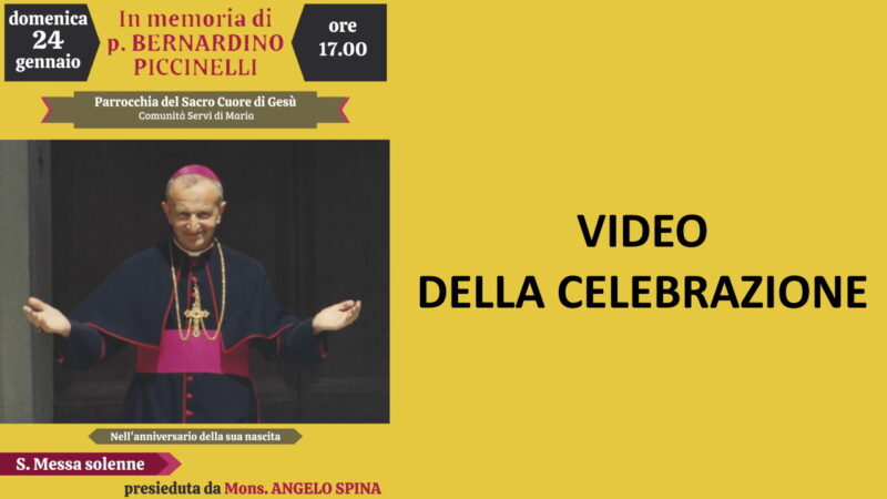 Amabile, sorridente e mite. Sempre disponibile verso chiunque lo cercava, Padre Bernardino Piccinelli ha mostrato il volto più bello della Chiesa, quello della santità, perché si è lasciato abitare da Dio e con la sua vita ha testimoniato il Vangelo. Frate dell’Ordine dei Servi di Maria, parroco per tanti anni della parrocchia del Sacro Cuore e vescovo ausiliare di Ancona, padre Bernardino ha lasciato un … Continua a leggere Santa Messa in memoria di padre Bernardino Piccinelli