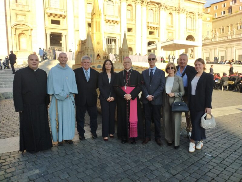 Papa Leone XIV ha benedetto il “Covo” di Campocavallo, situato nella Piazza di San Pietro a Roma, davanti a migliaia di pellegrini. La nutrita delegazione diocesana è stata accompagnata dall’arcivescovo Angelo Spina, da don Luca Bottegoni, Vicario generale, da Padre Domenico Spadafina, parroco di Campocavallo, dalla Sindaca di Osimo Michela Glorio, dal presidente del Comitato del Covo dottor Raimondo Orsetti, e dai componenti il Comitato … Continua a leggere Il “Covo” di Campocavallo benedetto da Papa Leone XIV