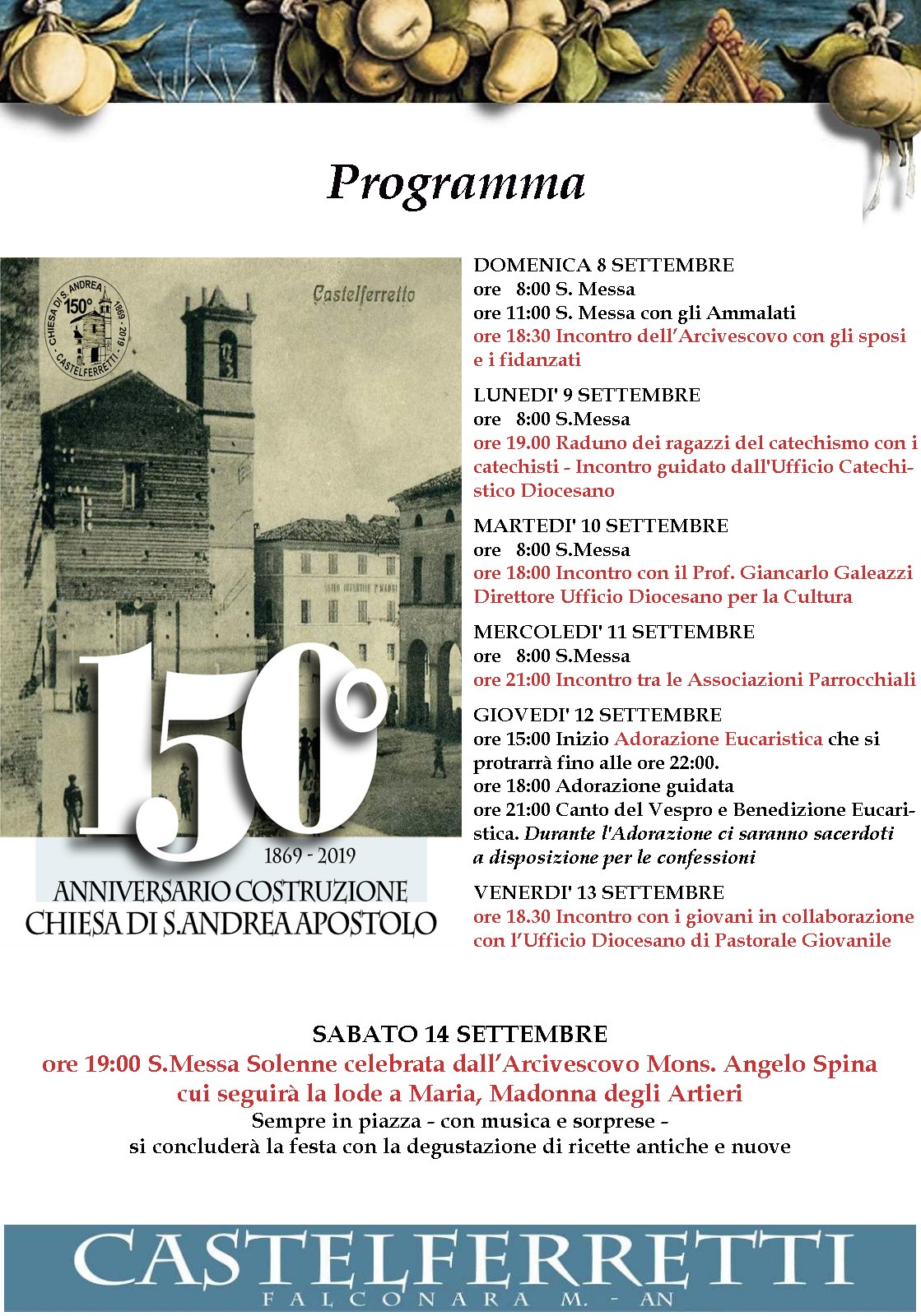 Per i 150 anni della chiesa di Castelferretti, continuano a Castelferretti gli eventi per l’anniversario della costruzione della Chiesa di S.Andrea Apostolo.
