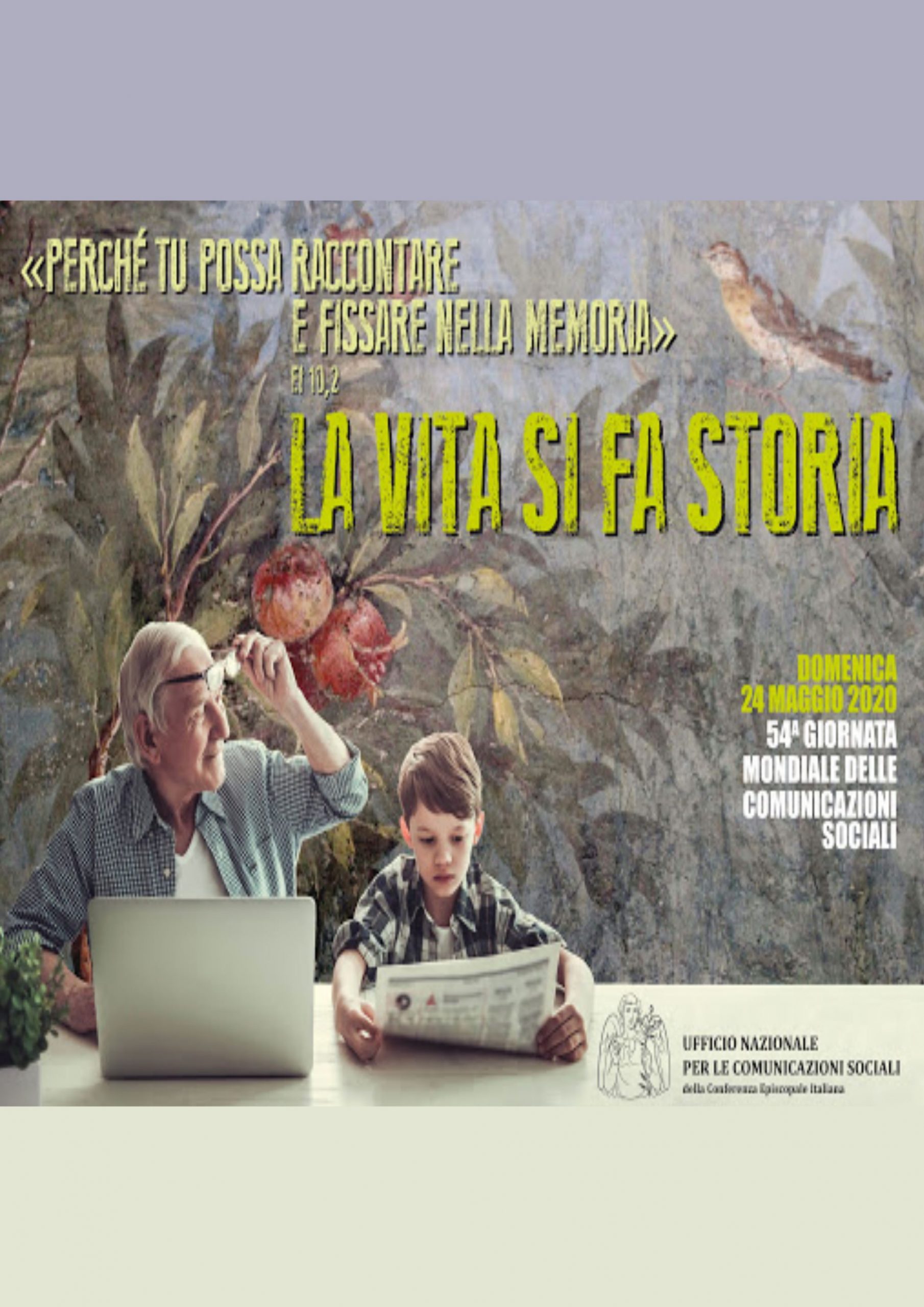 Il 24 maggio si celebra la 54esima Giornata mondiale delle Comunicazioni Sociali. Nel messaggio “Perché tu possa raccontare e fissare nella memoria” (Es 10,2). La vita si fa storia Papa Francesco richiama la necessità della «pazienza» e del «discernimento» per «riscoprire storie che ci aiutino a non perdere il filo tra le tante lacerazioni dell’oggi; storie che riportino alla luce la verità di quel che siamo, anche nell’eroicità ignorata del quotidiano».