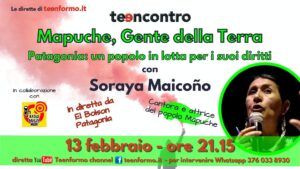 Il 13 febbraio alle ore 21.15 i ragazzi del gruppo anconetano si collegheranno con la Patagonia, per conoscere ed informarsi su una questione davvero poco nota, quella del popolo Mapuche.