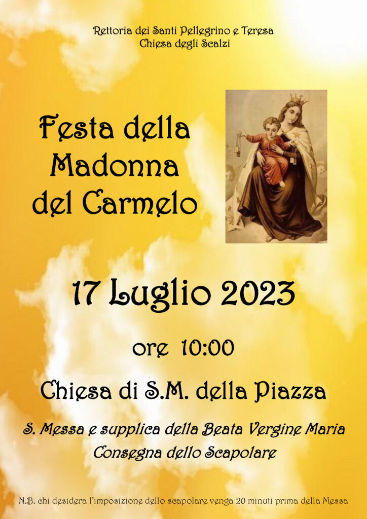 Eventi diocesani 29 Giugno 2023 admindiocesi Festa della Madonna del Carmelo lunedì 17 Luglio Descrizione: Download: Locandina Inizio: 17/07/2023 10:00 Fine: 17/07/2023 11:00 Categorie: Eventi diocesani Città: Ancona Regione: Marche Paese: Italia CONDIVIDIemailPrintFacebookTwitter