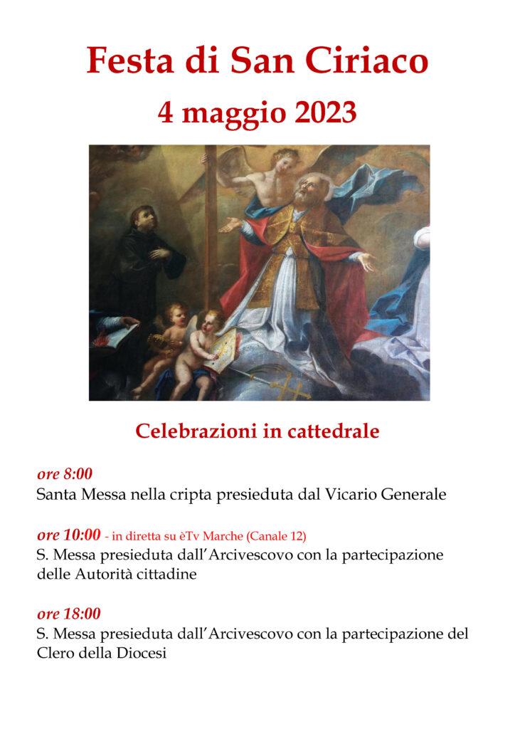 Eventi diocesani 20 Aprile 2023 admindiocesi Festa di San Ciriaco giovedì 4 Maggio Descrizione: Download: Locandina Data: 04/05/2023 (tutto il giorno) Categorie: Eventi diocesani Città: Ancona Regione: Marche Paese: Italia CONDIVIDIemailPrintFacebookTwitter