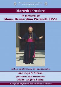 Nel 35° anniversario del suo transito, la sua comunità vuole ricordarlo con una S. Messa presieduta dall’Arcivescovo Mons. Angelo Spina e con una preghiera per la sua glorificazione. È infatti iniziata nel 1996 la causa di beatificazione: attualmente è in corso la Positio super virtutibus. Appuntamento l’1/10/2019 dalle ore 10:30 alle 12:00 presso la Chiesa del Sacro Cuore di Gesù (Comunità Servi di Maria)ad Ancona, Via Maratta. Pubblichiamo la locandina.