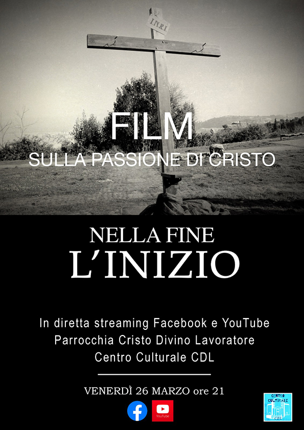 Venerdì 26 marzo 2021 ore 21:00, in diretta streaming su Facebook e sul canale YouTube dalla Parrocchia Cristo Divino Lavoratore, con il Centro Culturale ad Ancona, un film sulla passione di Cristo. A parte la base Ave verum di Mozart, la rapresentazione un lavoro (di musica e testi) “fatto in casa” e del tutto inedito.