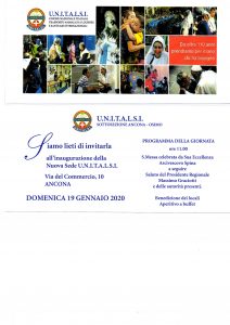 Per chi è interessato, pubblichiamo l’invito all’inaugurazione della nuova sede UNITALSI sottosezione Ancona Osimo, il 19 gennaio 2020, in via del Commercio (Google Maps).
