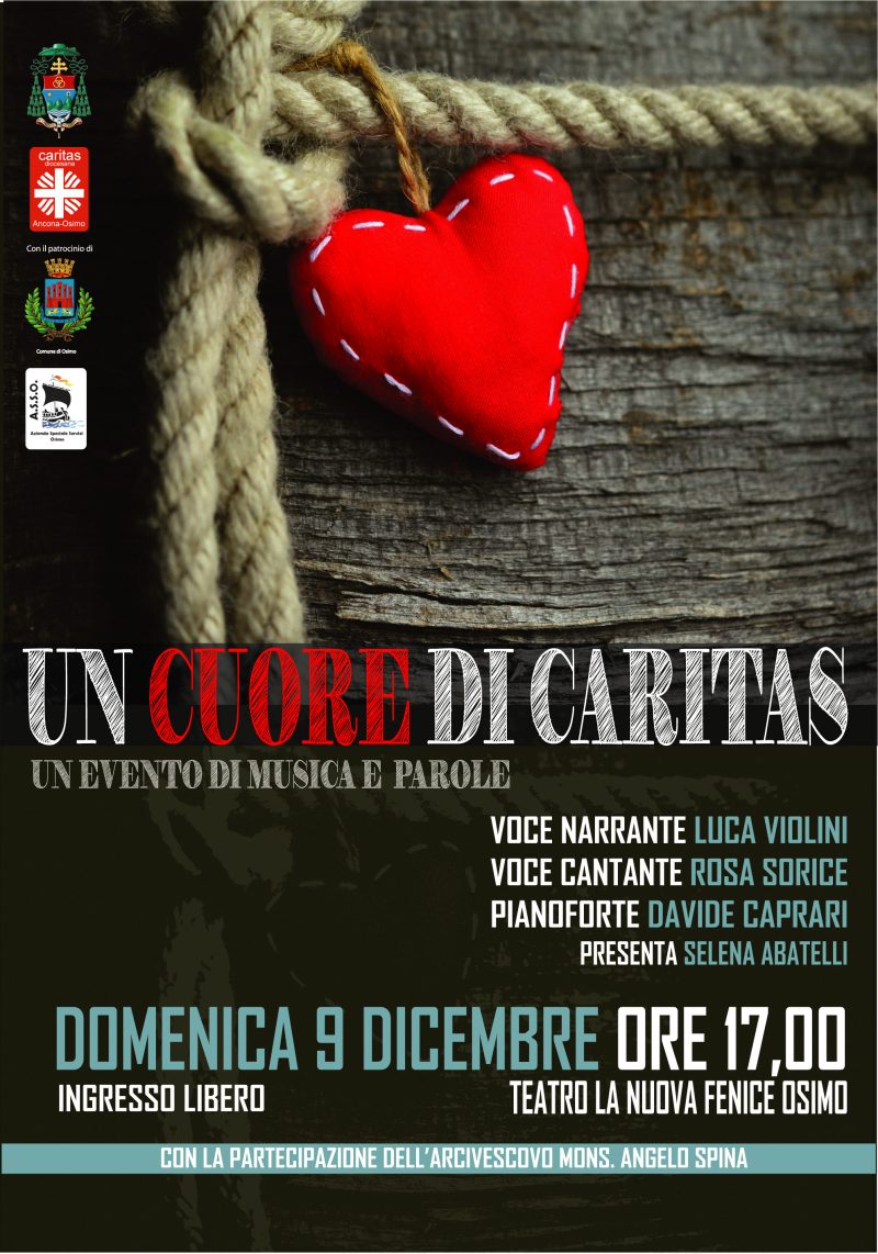La Caritas Diocesana di Ancona-Osimo è lieta di invitare la cittadinanza a “UN CUORE DI CARITAS” evento di musica e parole per raccontare le attività ed il lavoro di prossimità della Caritas nel territorio di Osimo. Domenica 9 dicembre alle ore 17 al Teatro la Nuova Fenice di Osimo si alterneranno le storie di carità con la voce narrante di LUCA VIOLINI, musiche e canzoni, … Continua a leggere domenica9Dicembre 00:00 UN CUORE DI CARITAS 09/12/2018 00:00 »