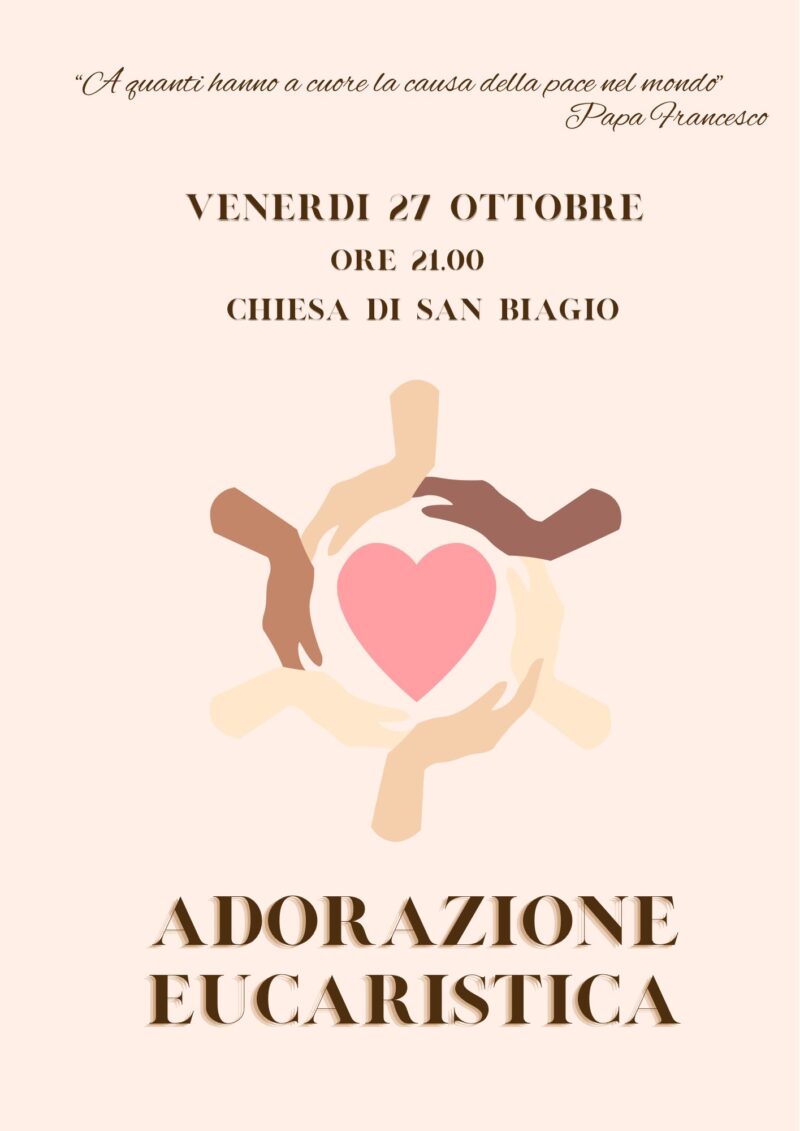 Eventi parrocchiali 27 Ottobre 2023 admindiocesi venerdì 27 Ottobre 21:00 ADORAZIONE EUCARISTICAInizio: 27/10/2023 21:00