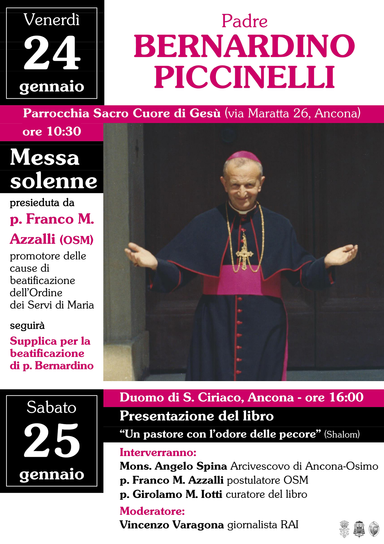 Sabato 25 Gennaio alle ore 16:00 presso il Duomo di Ancona (Google Maps), si terrà la presentazione del libro su P. Bernardino Piccinelli “Un pastore con l’odore delle pecore”.