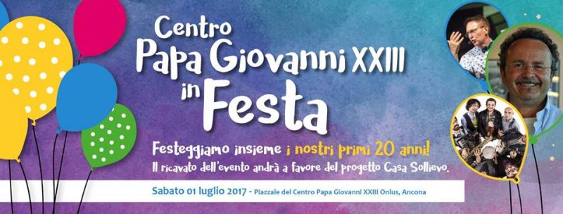Il 1 Luglio 2017 il Centro Papa Giovanni compie 20 anni e tutti sono invitati alla festa! Dalle 19 la possibilità di mangiare un tipico menù anconetano con stoccafisso, sardoncini scottadito e molto altro. Ma non è finita qui! Dalle 21 “Rana Show” e a seguire Folkantina in Concerto. Presentatore d’eccezione Roberto Cardinali. A mezzanotte tutti con il naso all’in su per lo spettacolo pirotecnico … Continua a leggere sabato1Luglio 00:00 Festa con il Centro papa Giovanni XXIII ad Ancona 01/07/2017 00:00 »