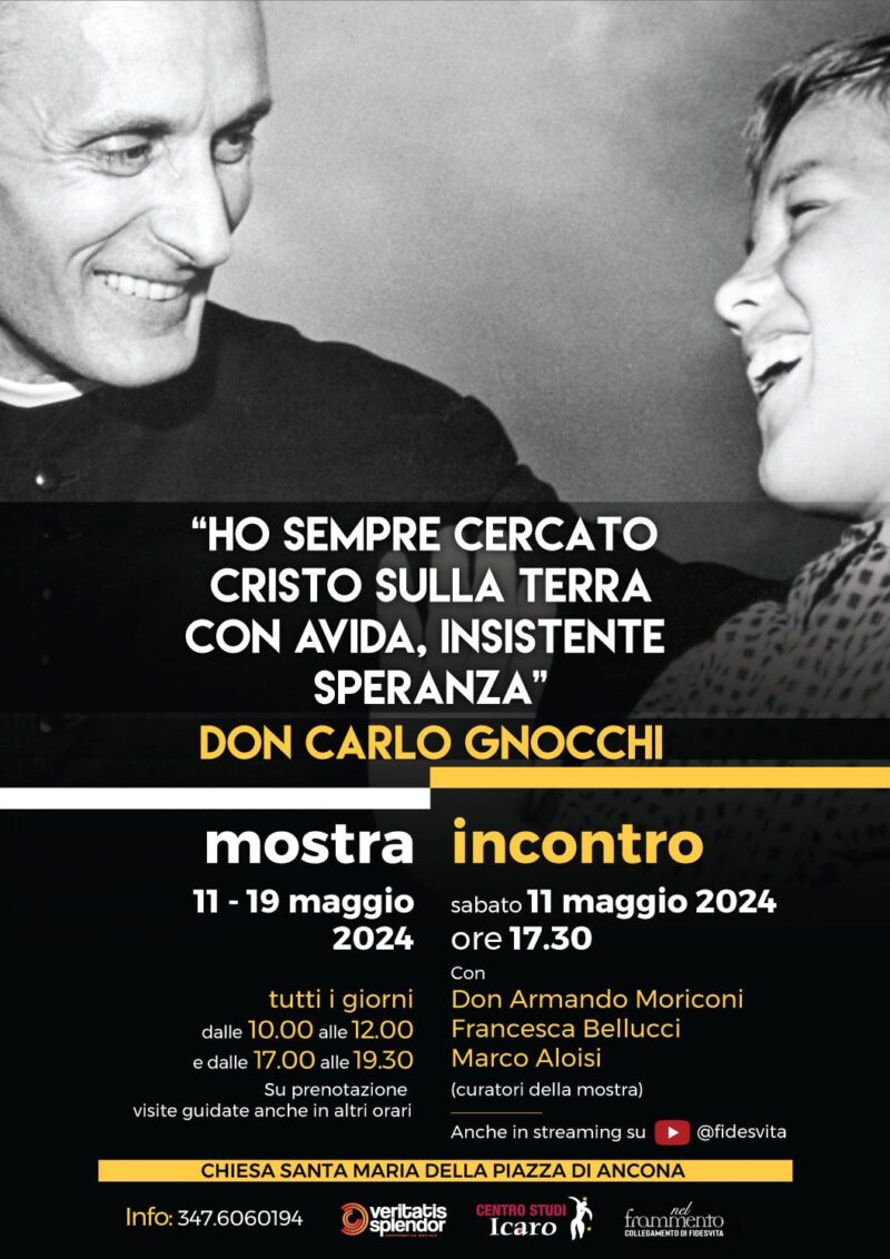 Associazioni e movimenti 4 Maggio 2024 micolsaramisiti sabato 11 Maggio 17:30 Mostra dedicata a don Carlo GnocchiInizio: 11/05/2024 17:30Organizzatore: Fides Vita
