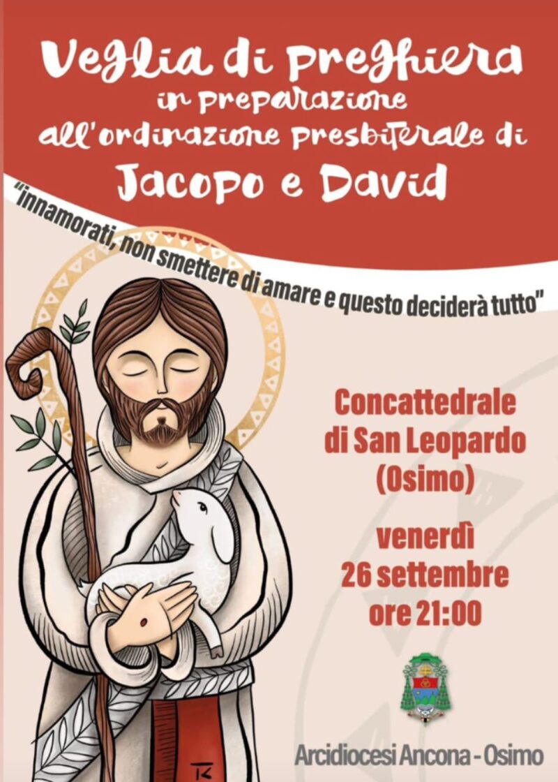 Eventi diocesani 26 Settembre 2025 admindiocesi venerdì 26 Settembre 21:00 Vegli di preghiera in preparazione all’ordinazione presbiterale di Jacopo e DavidInizio: 26/09/2025 21:00