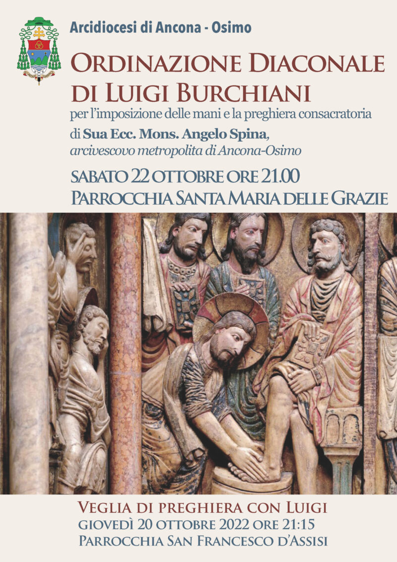 Eventi diocesani 13 Ottobre 2022 admindiocesi sabato 22 Ottobre 21:00 Ordinazione Diaconale di Luigi BurchianiInizio: 22/10/2022 21:00