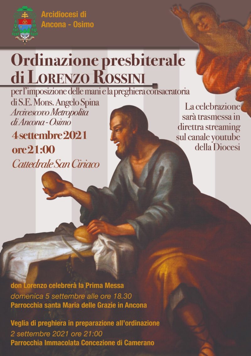 Eventi diocesani 25 Agosto 2021 admindiocesi sabato 4 Settembre 21:00 Ordinazione Presbiterale di Lorenzo RossiniInizio: 04/09/2021 21:00