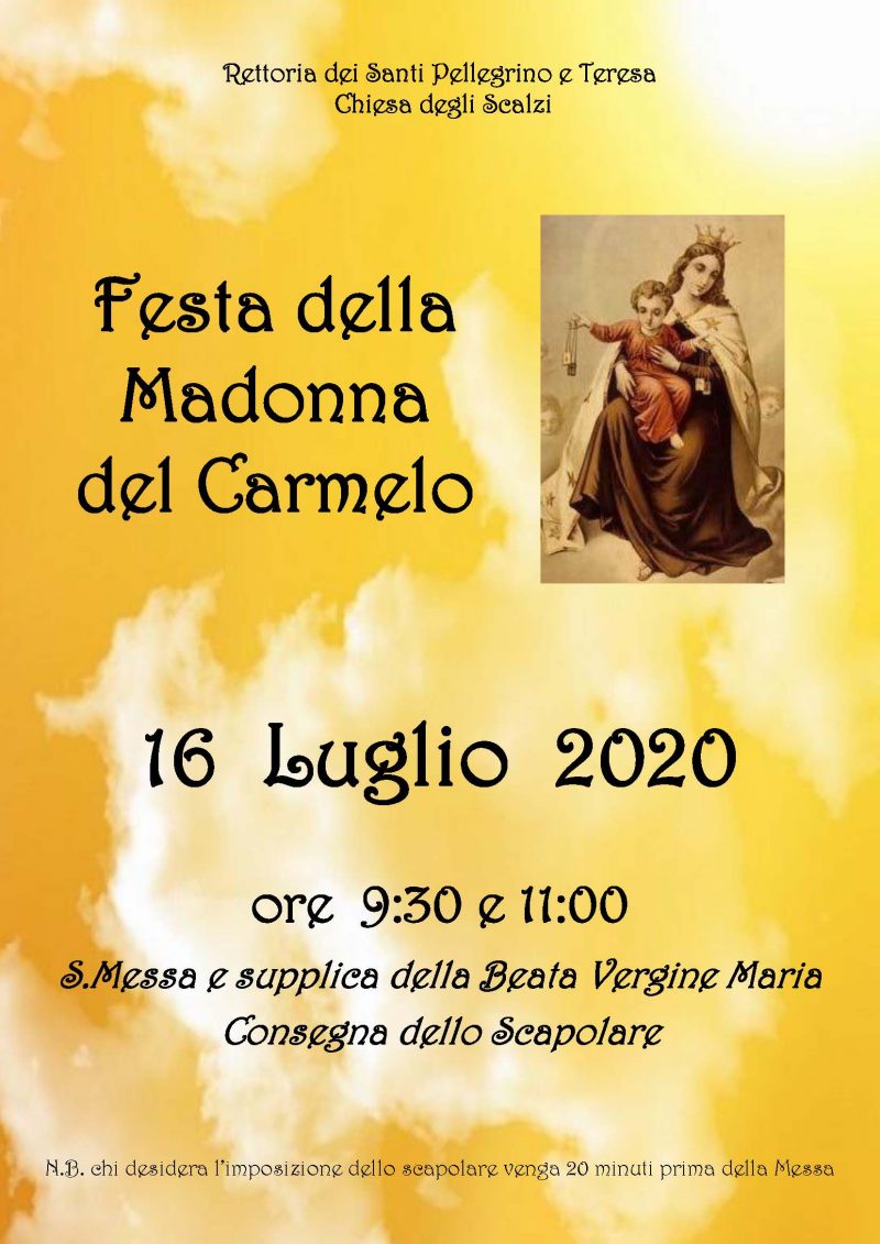 Eventi diocesani 15 Luglio 2020 admindiocesi giovedì 16 Luglio Festa della Madonna del CarmeloData: 16/07/2020 (tutto il giorno)