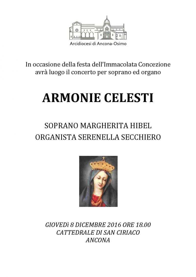In occasione della festa dell’Immacolata 2016, presso il Duomo di Ancona, giovedì 8 dicembre alle ore 18, concerto per soprano e organo con il soprano Margherita Hibel e l’organista Serenella Secchiero.