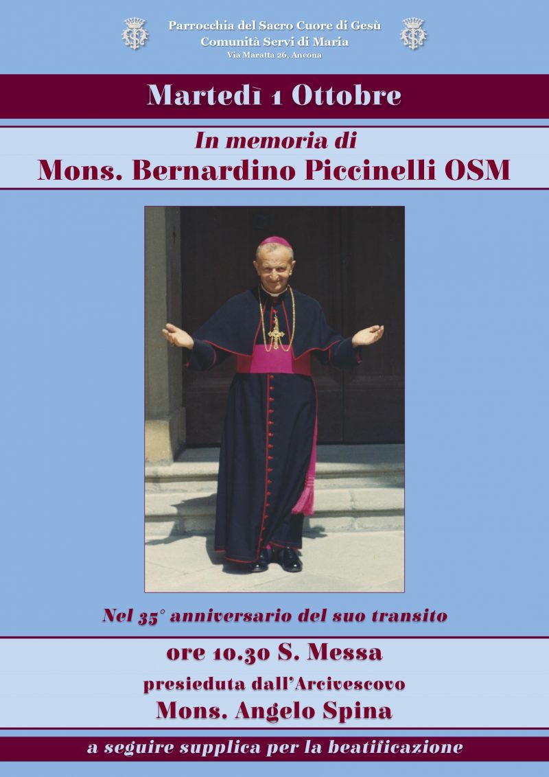 Eventi parrocchiali 28 Settembre 2019 admindiocesi martedì 1 Ottobre 10:30 In Memoria di Mons. Bernardino Piccinelli OSMInizio: 01/10/2019 10:30