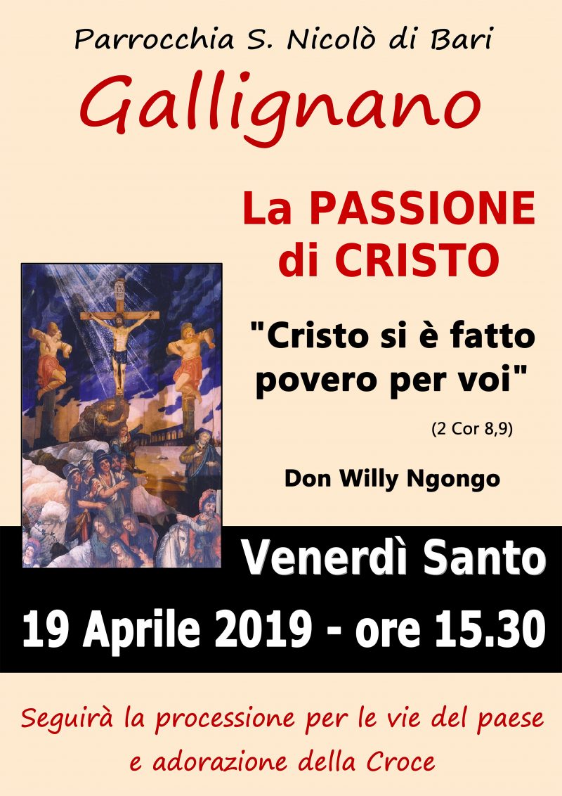 Pubblichiamo la locandina per la celebrazione del Venerdi Santo nella Parrocchia di Gallignano-Ancona con don Willy Ngongo, il 19 aprile ore 15:30.