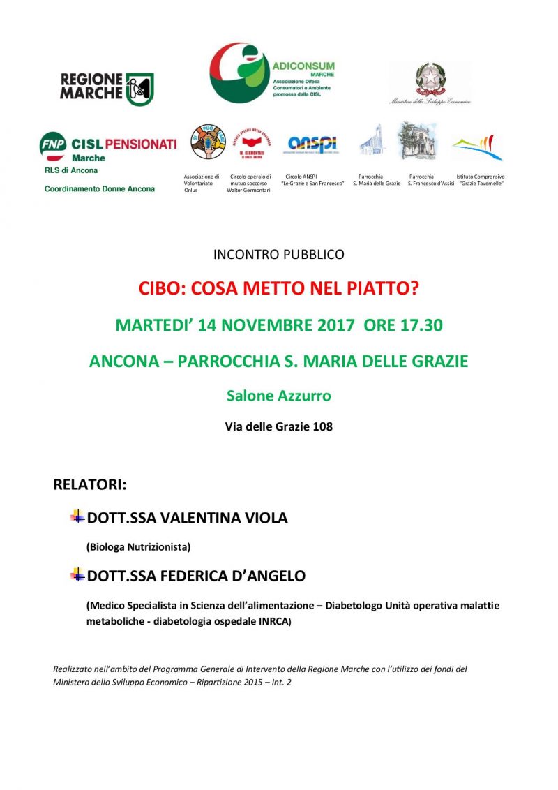 Un incontro pubblico ,sostenuto da numerosi Enti e Associazioni, martedì 14 novembre alle 17.30, nel salone Azzurro della Parrocchia di S.Maria delle Grazie legato ai temi dell’alimentazione. Due esperti del settore chiariranno diversi aspetti relativi al cibo che mangiamo e ai suoi effetti nell’organismo. Un tema che affrontiamo nel quotidiano e al quale sono legati messaggi che ci giungono da ogni parte. Nella locandina pubblicata … Continua a leggere martedì14Novembre 00:00 Cosa metto nel piatto? 14/11/2017 00:00 »