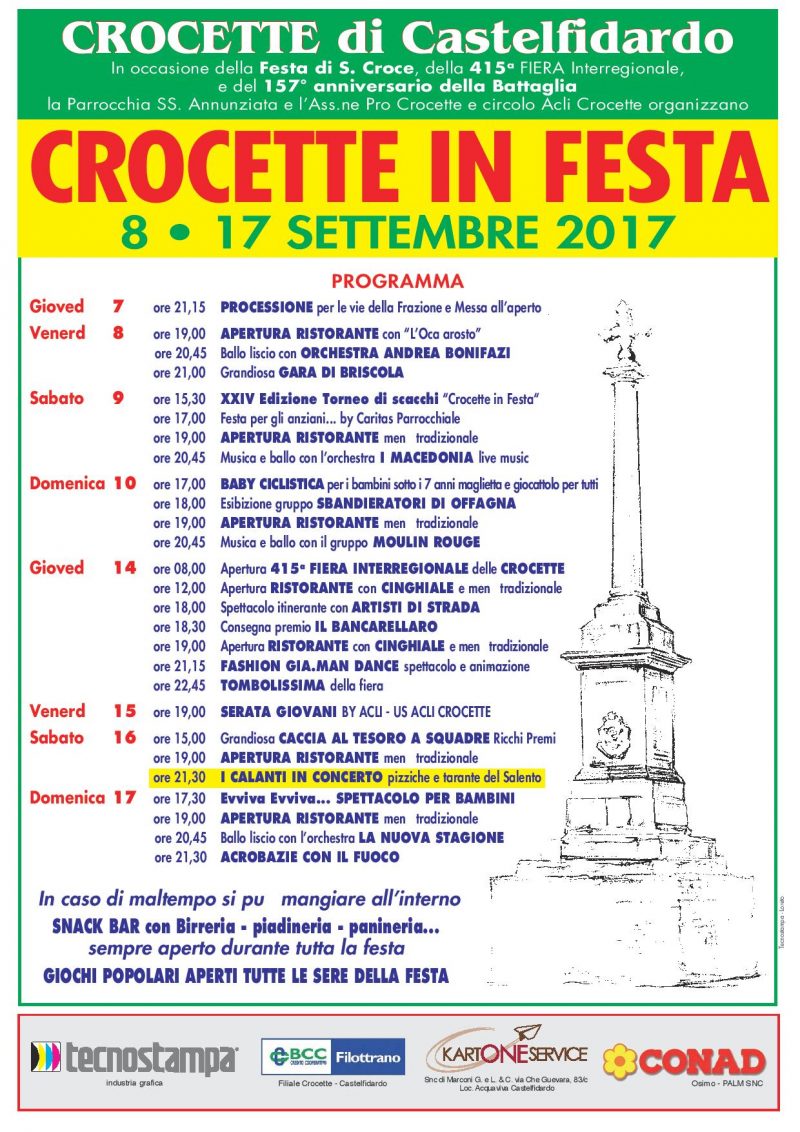 Dal 4 al 17 settembre 2017 una festa dalle linee religiose e civili a Crocette di Castelfidardo. in occasione della festa della santa Croce che si celebra il 10 settembre, con la 415.a edizione della Fiera, ricordando il 157mo anniversario della Batta glia di Castelfidardo. L’organizzazione è a cura della parrocchia della SS Annunziata, e del comitato pro Crocette. Giovedì 4 settembre alle ore 21.15 … Continua a leggere domenica17Settembre 00:00 Crocette: una festa che nasce lontano nel tempo 17/09/2017 00:00 »