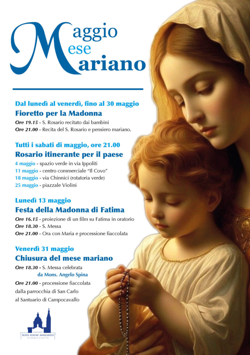 Eventi parrocchiali 29 Maggio 2024 admindiocesi venerdì 31 Maggio 18:30 Chiusura del mese marianoInizio: 31/05/2024 18:30