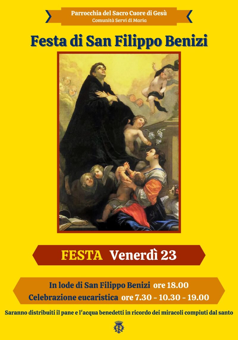 Eventi parrocchiali 20 Agosto 2024 admindiocesi venerdì 23 Agosto Festa di San Filippo BeniziData: 23/08/2024