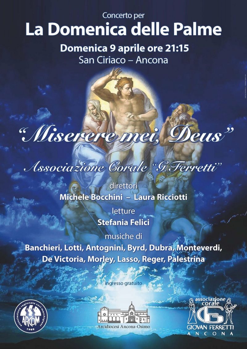 “Miserere mei Deus” questo il titolo del Concerto con la corale G.Ferretti a S.Ciriaco di Ancona, domenica 9 aprile 2017 alle ore 21,15. I particolari nella locandina che pubblichiamo.